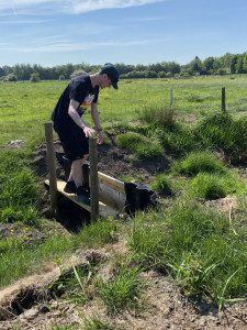On 14th May Justin Matthews, Area Ranger, took a group of National Trust staff and Volunteers on a walk around the Manor House Farm site to show the improvements that have been made. Work had been ongoing during Spring 2025 where a variety of techniques were used in order to rewet the area. Existing ditches were re-profiled in strategic places to encourage the water to spill out onto the fields. Weirs were installed to reduce water flow and loss of water across the site. Several wet grassland species are due to be planted to boost biodiversity and also providing places for wildlife to breed, nest, feed and shelter.